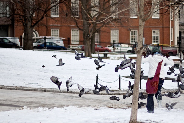 Day Six: You must always notice all facets of the city subtly. The truth is everyone enjoys staring in this city. Seriously, everyone loves gawking, (never opened-mouthed mind you for fear a pigeon will drop something unpleasant into the mouth), but looking intently, unabashedly at the historic skyscrapers, at the homeless man with no legs and huge open-gauges on his arms, at the monochromatic graffiti on the inside of the Subway walls, at the Europeans gesticulating ferociously over their neon city-maps (you can tell they are European by the excess amount of pockets in their suave, black coats) and at the make-shift mariachi band playing down the subway car or on the street corner.